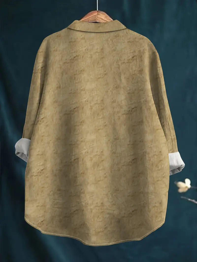Vintage Butterfly Art Print Casual Shirt with Pocket