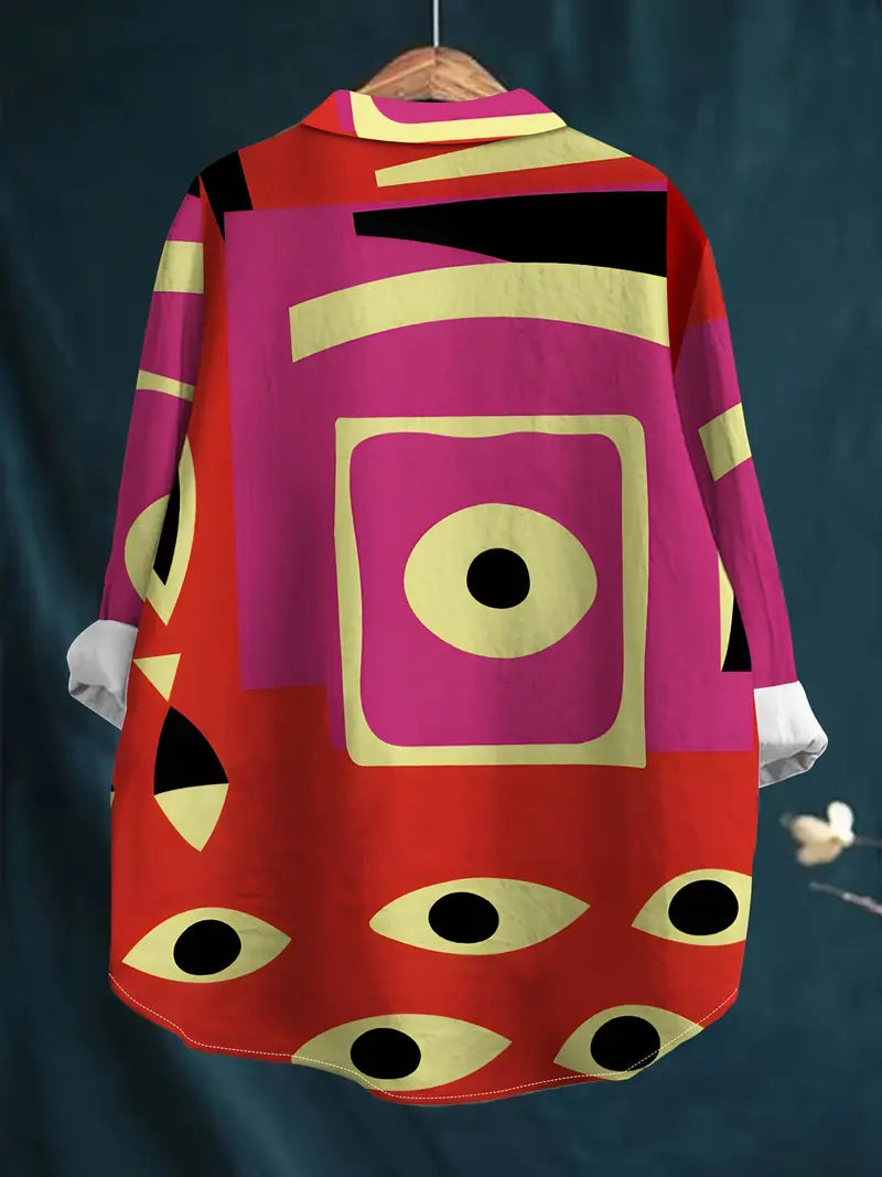 Vintage Eye Art Print Casual Shirt with Pocket